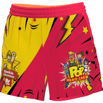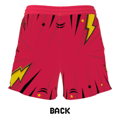100% polyester basketball style mesh shorts with side pockets. Light and airy, perfect for long days on the con floor!