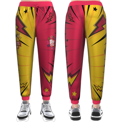 Get chilly on the con floor? All business, even more comfort with these 100% polyester dye sublimated comfy joggers.